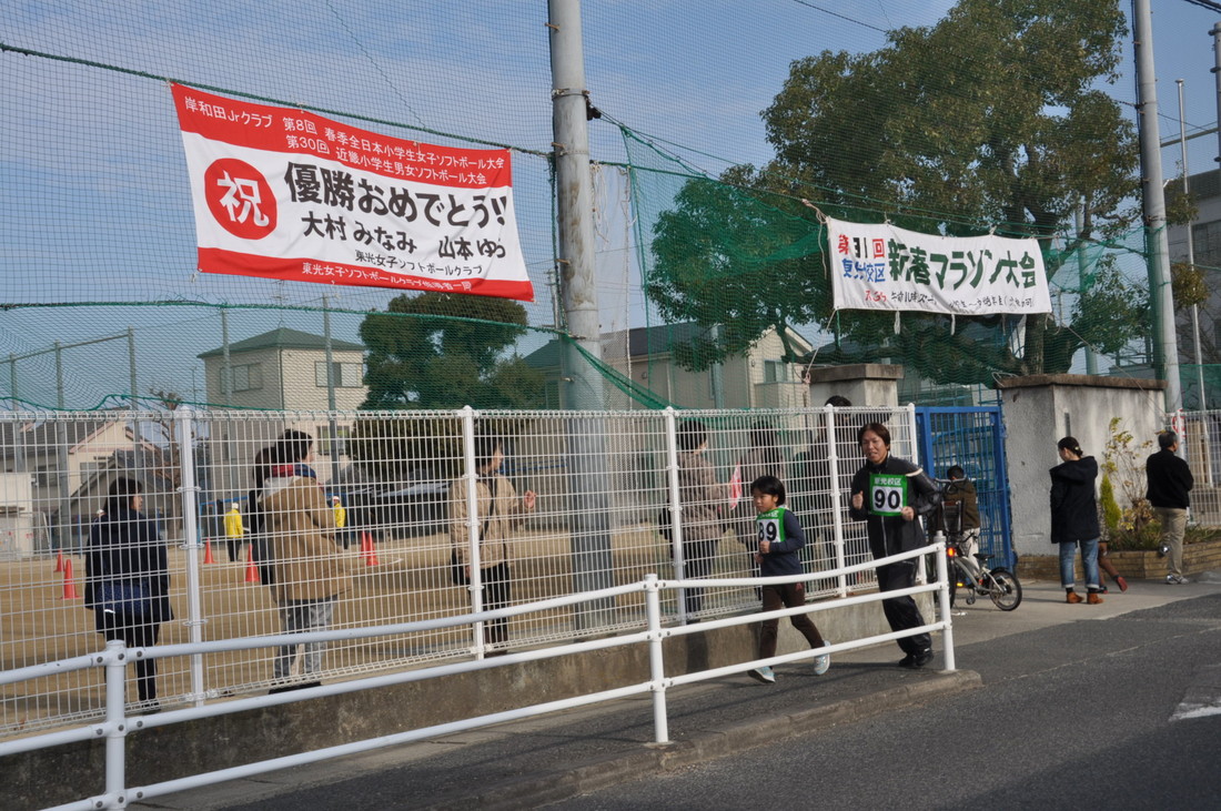 マラソンの横断幕の隣にはソフトボールで優勝の横断幕もありました