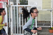 校門の前を駆け抜けます