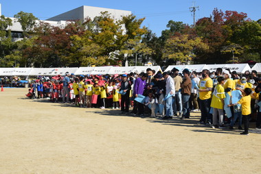 子供からお年寄りまでが、さわやかな秋の1日を楽しいスポーツで過ごし、