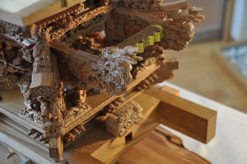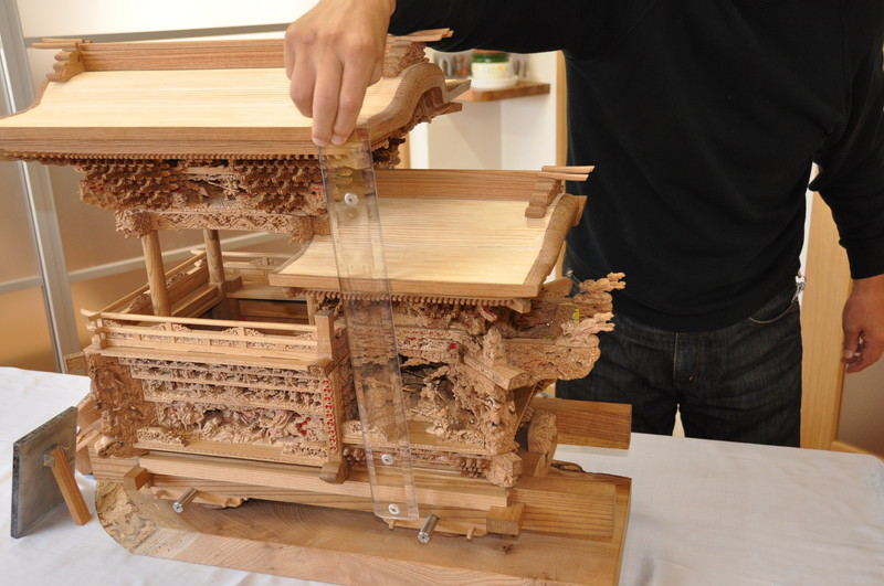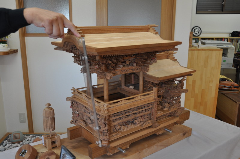 設計図が 第一であると 聞きました 寸分も違えば組み上げれない 作成に当たって ノミについても 1ミリのものを 三木市まで出かけ オーダーしたと ノミの取っ手も感触は製作者の握りとぴったりでした。