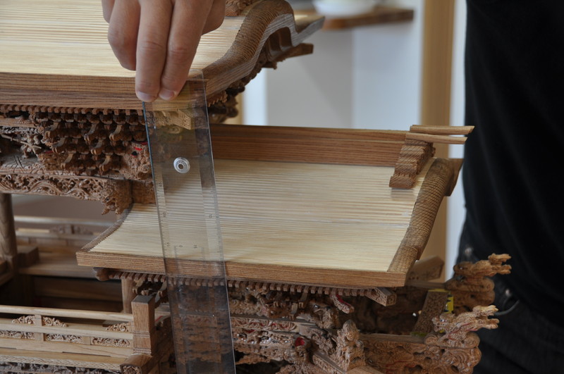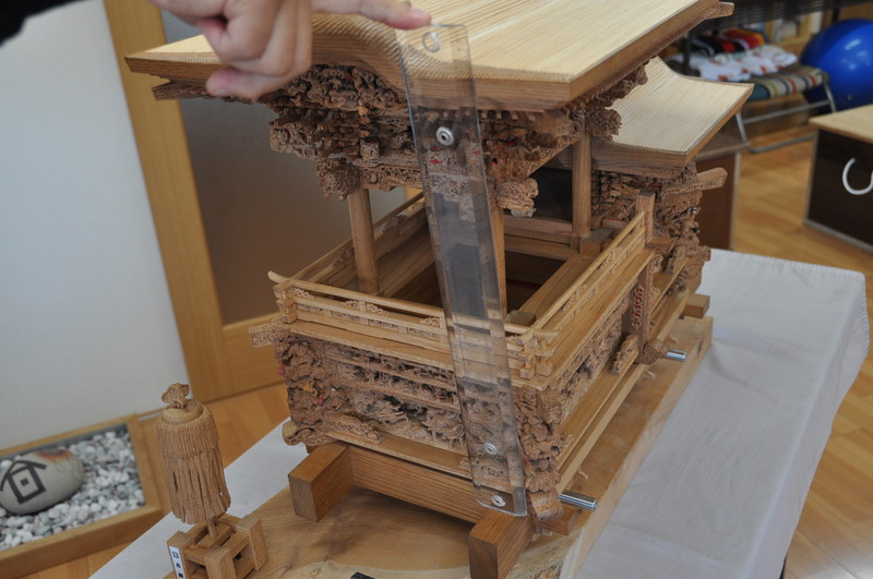 物差しを当てると屋根から土台の面まで合ってます 小屋根も同様に出来上がっていました