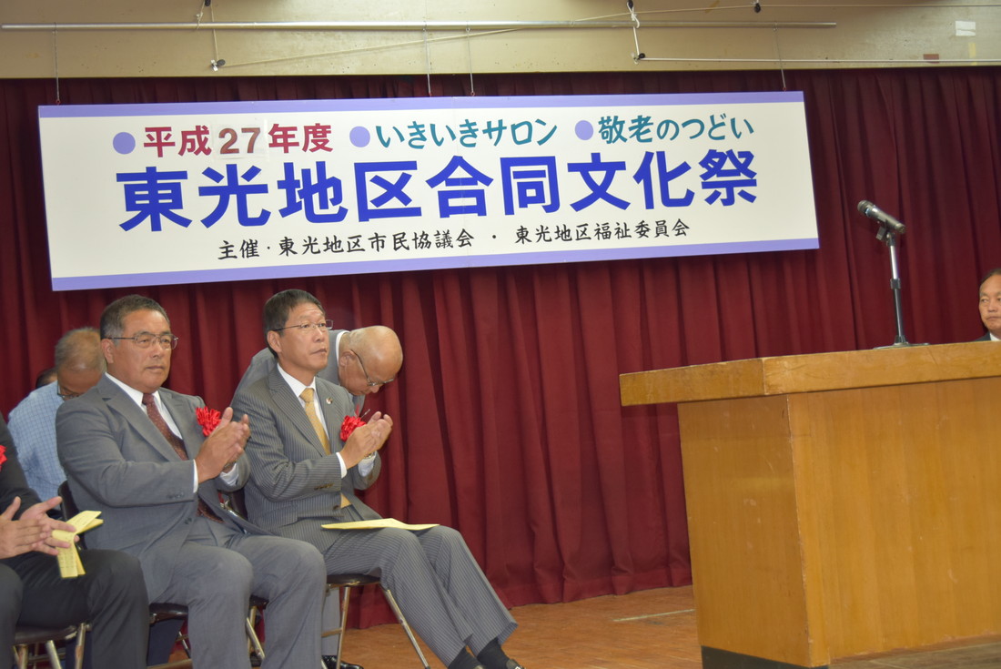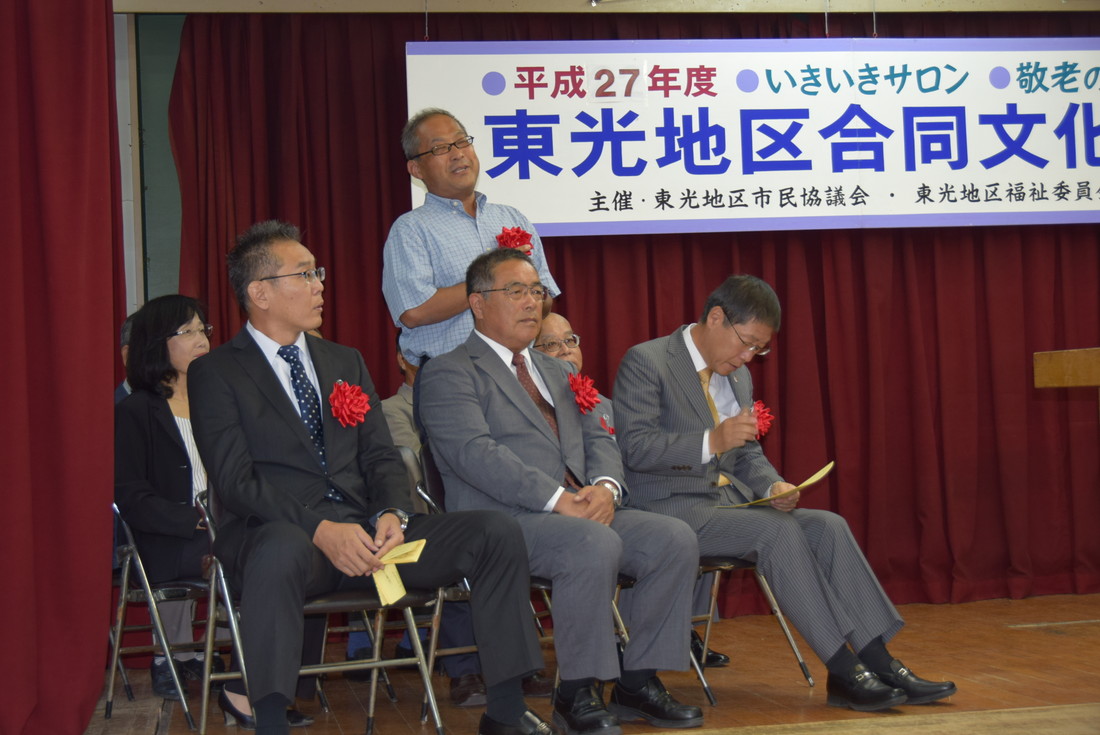 信貴岸和田市長はじめ来賓の方々です 徳田さんの司会で始まりました