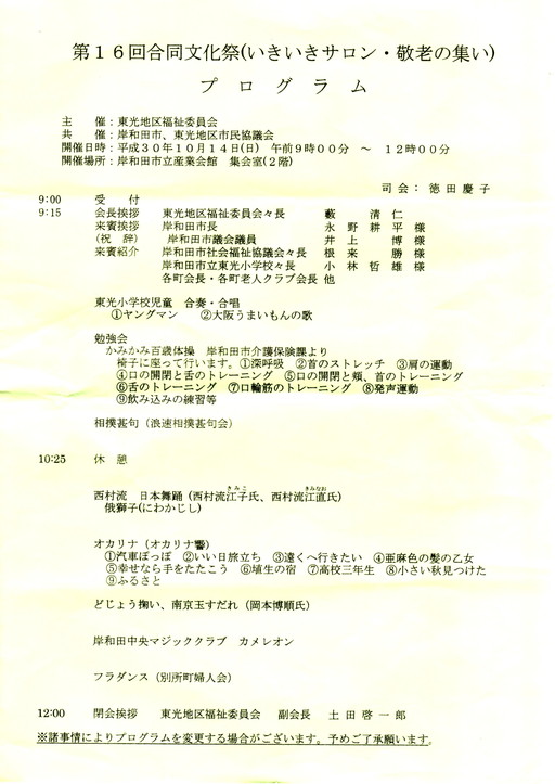 平成30年度 合同文化祭(いきいきサロン・敬老の集い)