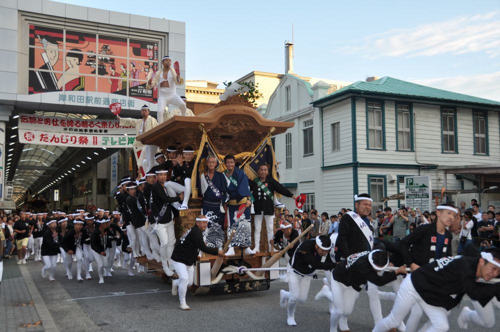 上だんじりに比べ 彫り物が細かい 和泉市から南の方(和泉市、岸和田市、貝塚市、 熊取町、泉佐野市、田尻町)では岸和田型 重心は下部(腰周り)にある 泉大津市、高石市、堺市は上だんじり、下だんじりが混在している 最近は下だんじりが増えつつあります