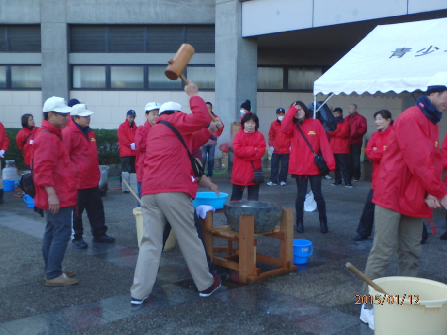 今年も成人の日を祈念し 参加の成人の方へ お祝いの御餅をつき